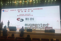 9月25日下午,中秋节后的第一个周末还没有结束,影创科技的全体成员和各界支持者们就收到一个喜讯:在刚刚落幕的2016 世界增强现实博览会亚洲站(AWE ASIA)上,影创科技膺获2016世界增强现实博览会最佳硬件大奖。比起半月前刚刚获得的“2016中国十大创客”大奖,这份国际上有重要影响力的世界级大奖着实又让大家惊喜了一次。